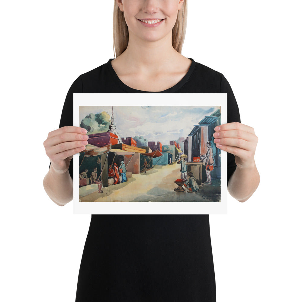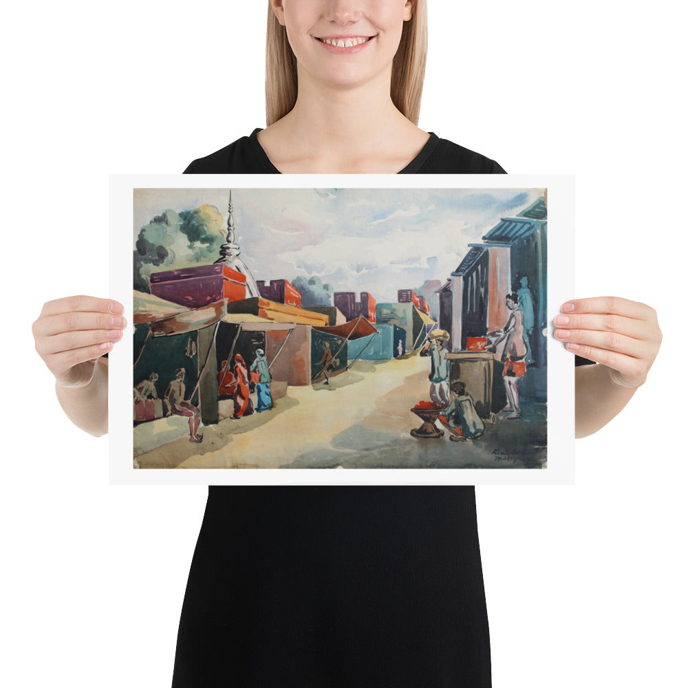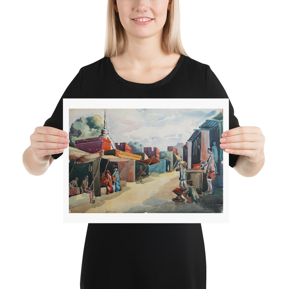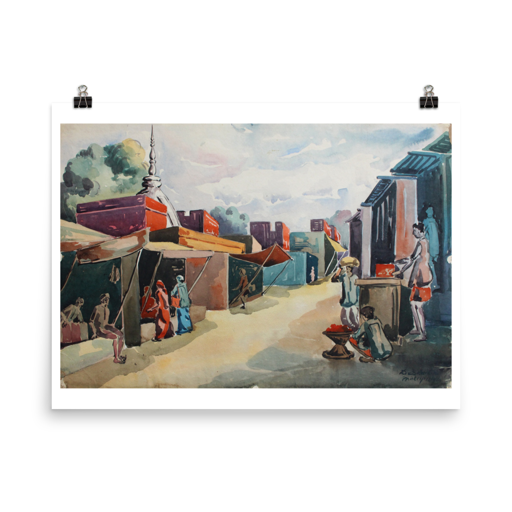 Delhi Bazaar - Watercolor 1960